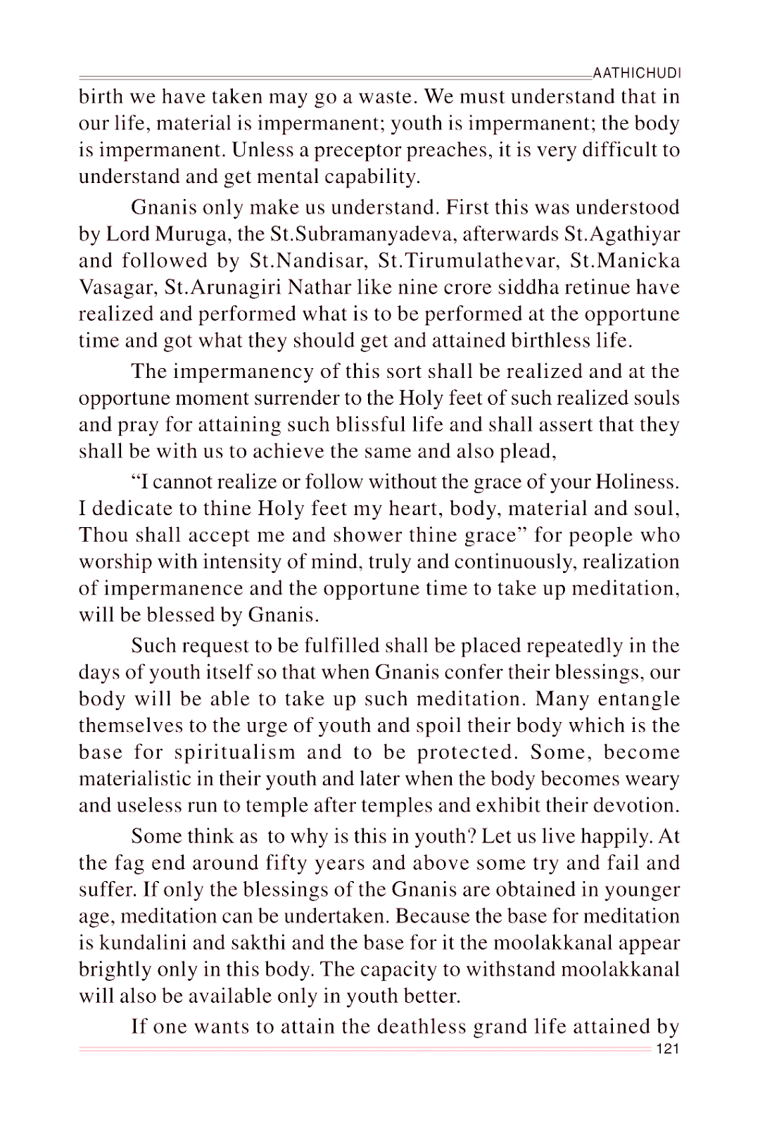 Saint Avvaiyar is a realized blissful soul. She has realized the