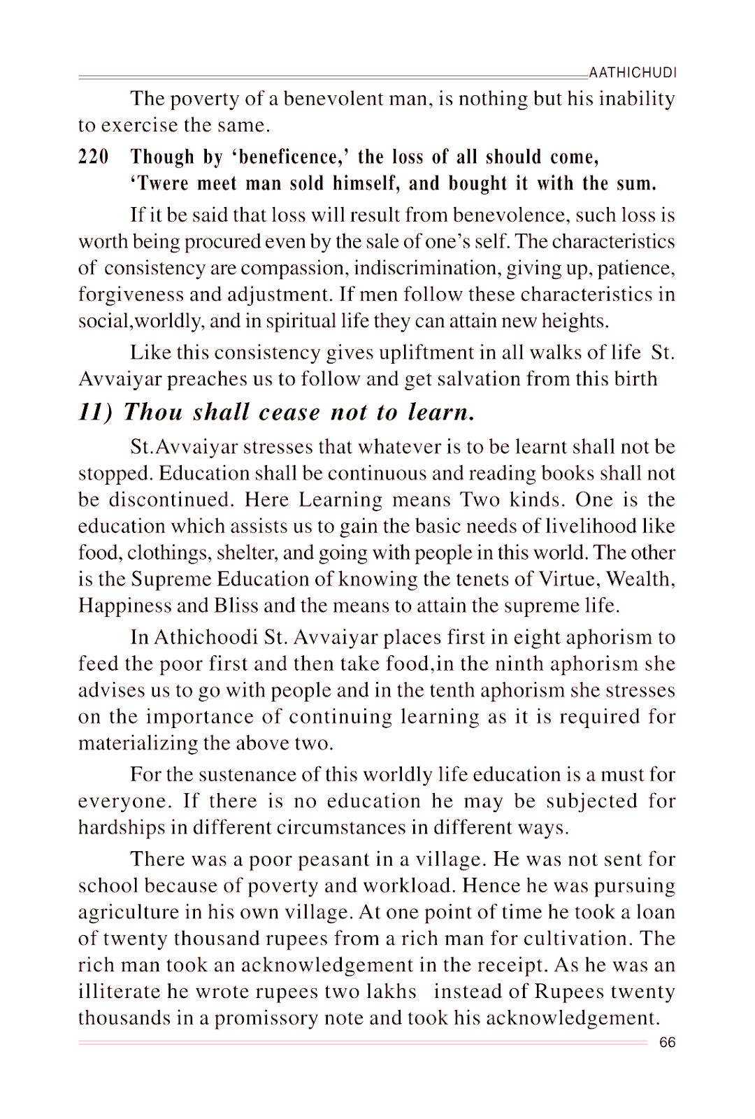 GNOSIS in her Aathichudi. That is VIRTUE, WEALTH,